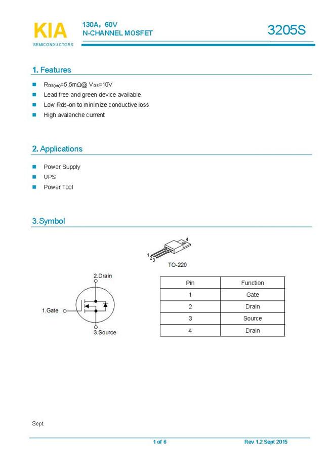 參數: ID(A): 130    BVDSS(V): 60    RDS(ON): 0.0055    Qg(nC): 66    Package: TO-220